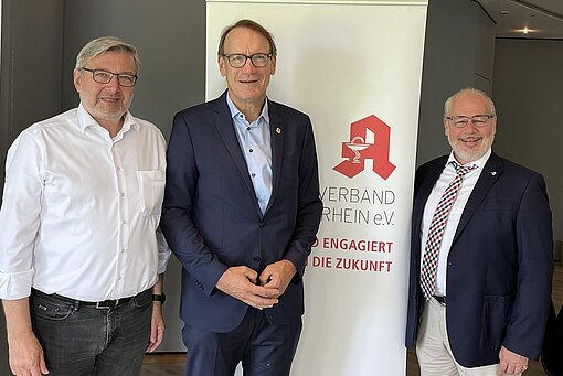 Thomas Preis, Vorsitzender Apothekerverband Nordrhein e.V. (Bildmitte) konnte auf der Klausurtagung zur politischen Diskussionrunde die Berichterstatter für Apotheken im deutschen Bundestag Dirk Heidenblut (SPD-Bundestagsfraktion, Bild links) und Dr. Georg Kippels (CDU-/CSU-Bundestagsfraktion, Bild rechts) begrüßen.