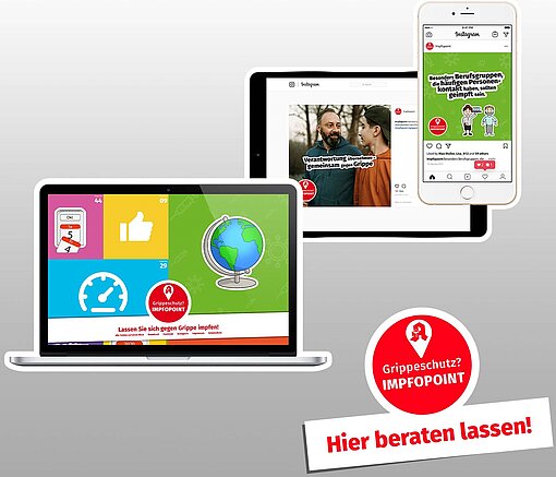 Für die Nutzung durch und in den Apotheken stehen vielfältige zusätzliche Materialien zur Verfügung. Ein Basis-Paket versorgt die teilnehmenden Apotheken direkt mit einem Plakat und Türaufklebern. In einem umfangreichen Download-Bereich gibt es weitere Plakatmotive und Handzettel zur Kundeninformation sowie weiteres digitales Material. Dies ist beispielsweise für die in vielen Apotheken installierten Informationsmonitore einsetzbar und kann vor allem unmittelbar in den Social-Media-Kanälen der Apotheke genutzt werden. Darüber hinaus steht für die Bürgerinnen und Bürger die bewährte zentrale Internetpräsenz unter www.impfopoint.de zur Verfügung, die auf allen Kampagnen-Materialien aktiv beworben wird.