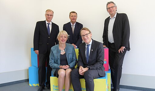 v.l.n.r.: Dr. Klaus Michels, Susanne Schneider, Christof Rasche, Thomas Preis und Thomas Franzkewitsch. (Quelle: FDP-Landtagsfraktion NRW)