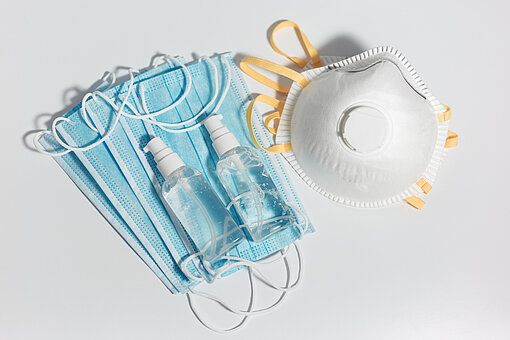 Mund-Nasen-Schutz-Masken und Desinfektionsmittel gehören dieses Jahr in jede Reiseapotheke. (Quelle: Adobe Stock, Andrew Ivan)