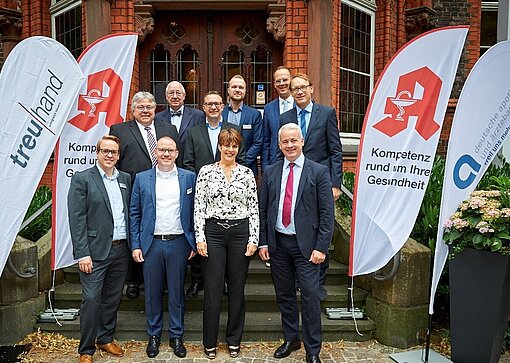 Die Referenten des diesjährigen Existenzgründer-Workshops: obere Reihe (von links): Norbert Steffens (apoBank), Heinz-Peter Barleben (Apothekerkammer Nordrhein), Dr. Tobias Craan, Maurice Linden (ARZ Service GmbH), Dr. Benjamin Wessinger (Deutsche Apotheker Zeitung), Thomas Preis (Apothekerverband Nordrhein e.V.); vordere Reihe (von links): Philipp Bayerschen (Treuhand Hannover), Martin Bechtold (Treuhand Hannover), Silke Wolff (Treuhand Hannover), René Braun (apoBank).
